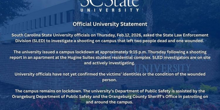 Duas pessoas morreram e uma ficou ferida em um ataque a tiros na noite desta quinta-feira (12) em um dormitório da Universidade da Carolina do Sul, uma instituição historicamente negra nos Estados Unidos, o que levou ao isolamento do campus, informaram autoridades locais em um comunicado.