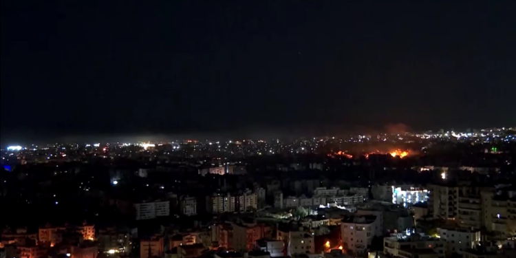 Horas depois, explosões ecoaram nos subúrbios do sul de Beirute, com grandes colunas de fumaça , como registrado em imagem a partir de Baabda, cidade vizinha da capital libanesa (foto acima).