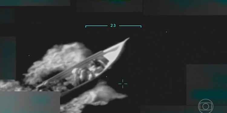 Imagem de bombardeio contra embarcação no Caribe