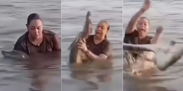 Banhista segura ‘pedaço de tronco’ em lagoa no México e descobre, aterrorizada, ser um jacaré