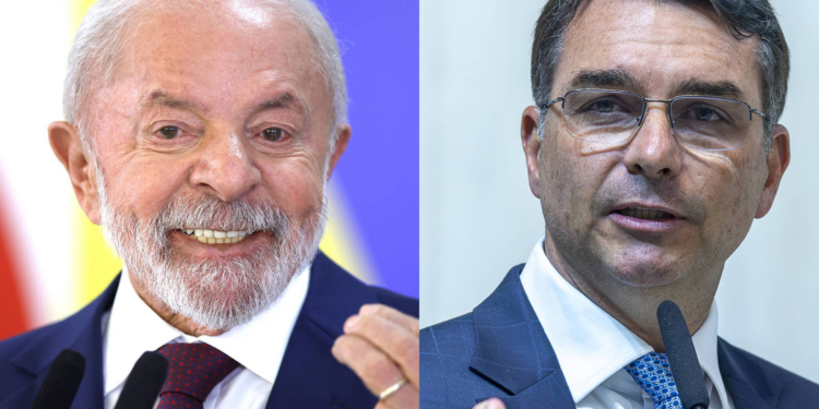 Pesquisa Datafolha mostra que a vantagem de Lula (38%) para Flávio (32%) é de seis pontos no primeiro turno. Em um eventual segundo turno, os dois aparecem empatados tecnicamente: o senador tem 43% ante 46% do petista.