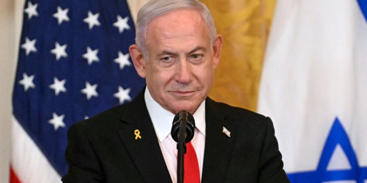 Netanyahu durante coletiva à imprensa na Casa Branca, após encontro com Trump