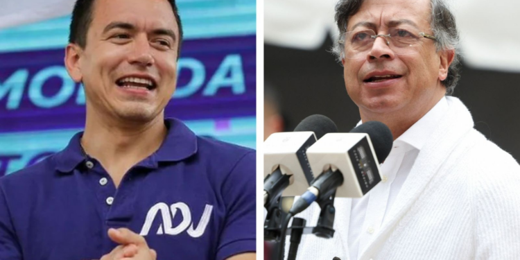 Daniel Noboa e Gustavo Petro, presidentes de Equador e Colômbia