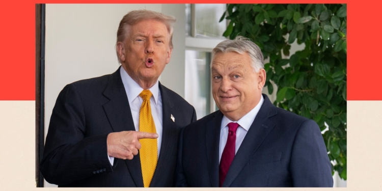 O presidente americano Donald Trump, à esquerda, e líder húngaro Viktor Orbán, à direita
