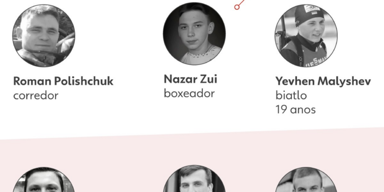 “O capacete traz os rostos de nossos atletas assassinados pela Rússia: o patinador artístico Dmytro Sharpar, morto em combate perto de Bakhmut; o biatleta Yevhen Malyshev, de 19 anos, morto perto de Kharkiv; e outros esportistas ucranianos cujas vidas foram interrompidas pela guerra”, escreveu Zelensky na segunda-feira, no Telegram.