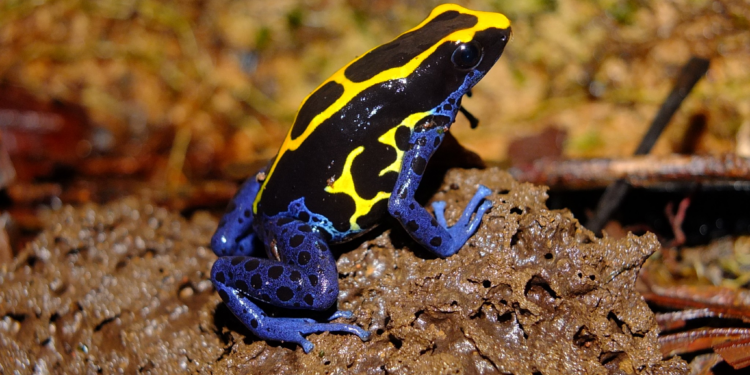 Essa estratégia é chamada de coloração de advertência. Ao ostentar tons chamativos, o animal sinaliza que não deve ser atacado. A pele dessas rãs secreta substâncias tóxicas capazes de paralisar — e, em alguns casos, matar — predadores.