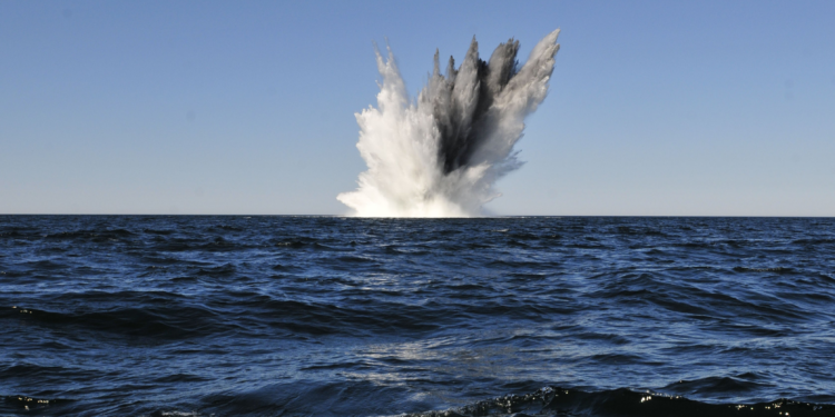 Mina naval da Alemanha instalada na Segunda Guerra Mundial sendo detonada em maio de 2014