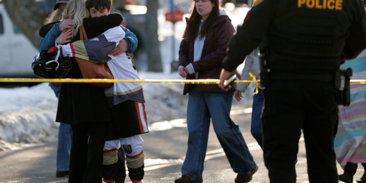 Do lado de fora da arena, familiares choravam, e jogadores de hóquei do ensino médio, ainda uniformizados, se abraçavam antes de embarcar em um ônibus para deixar a região.