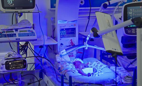 Uma incubadora móvel num hospital de maternidade em Kiev, Ucrânia.