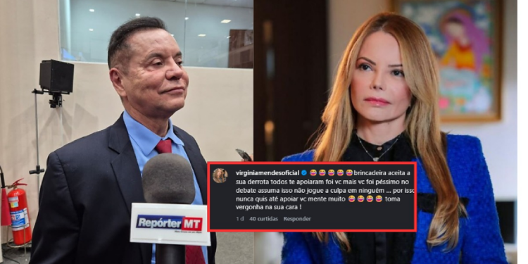A ex-primeira-dama de Mato Grosso, Virginia Mendes (União Brasil), usou as redes sociais para defender o marido, Mauro Mendes (União Brasil), das críticas do deputado estadual Eduardo Botelho (MDB). Em entrevista recente, o parlamentar atribuiu parte da responsabilidade pela derrota nas eleições de 2024 ao ex-governador. Em comentário ácido, Virginia mandou Botelho “tomar vergonha na cara” e afirmou que ele “mente muito”.